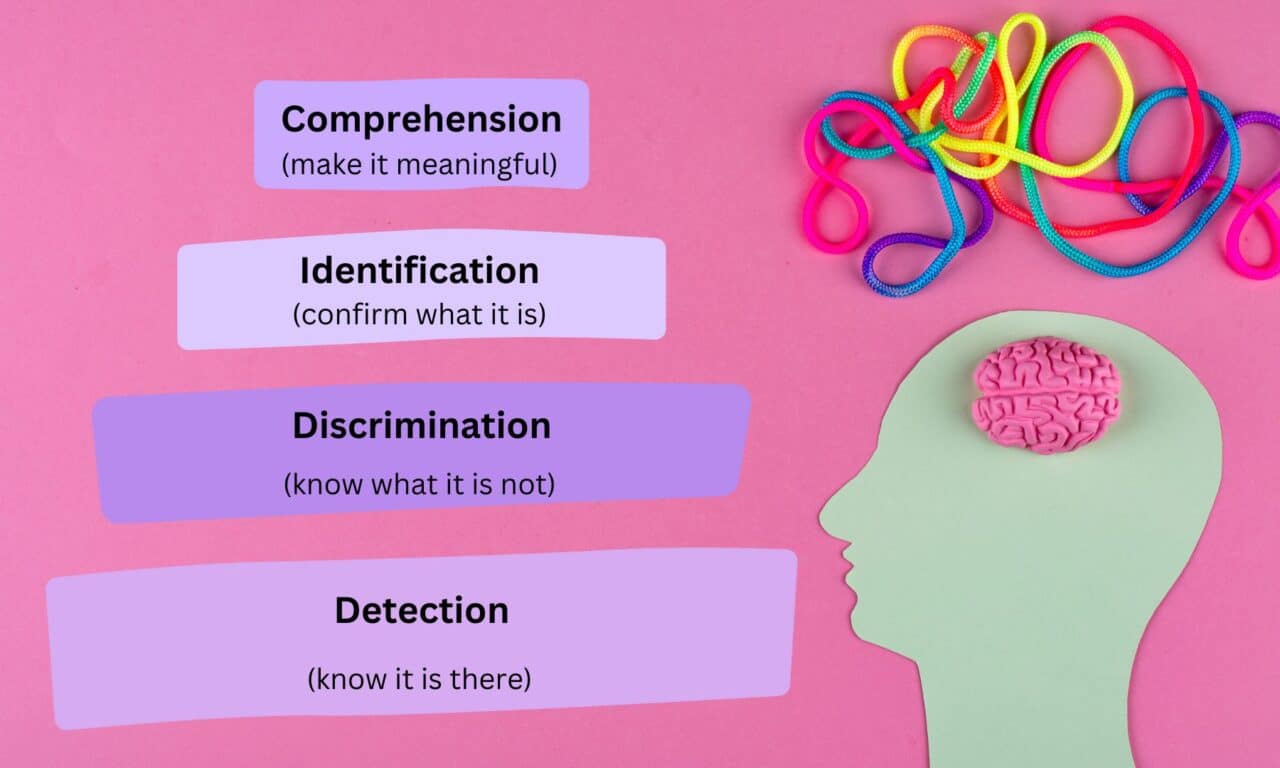 According to Erber’s Hierarchy of Auditory Skills, sound is processed in four ascending levels: